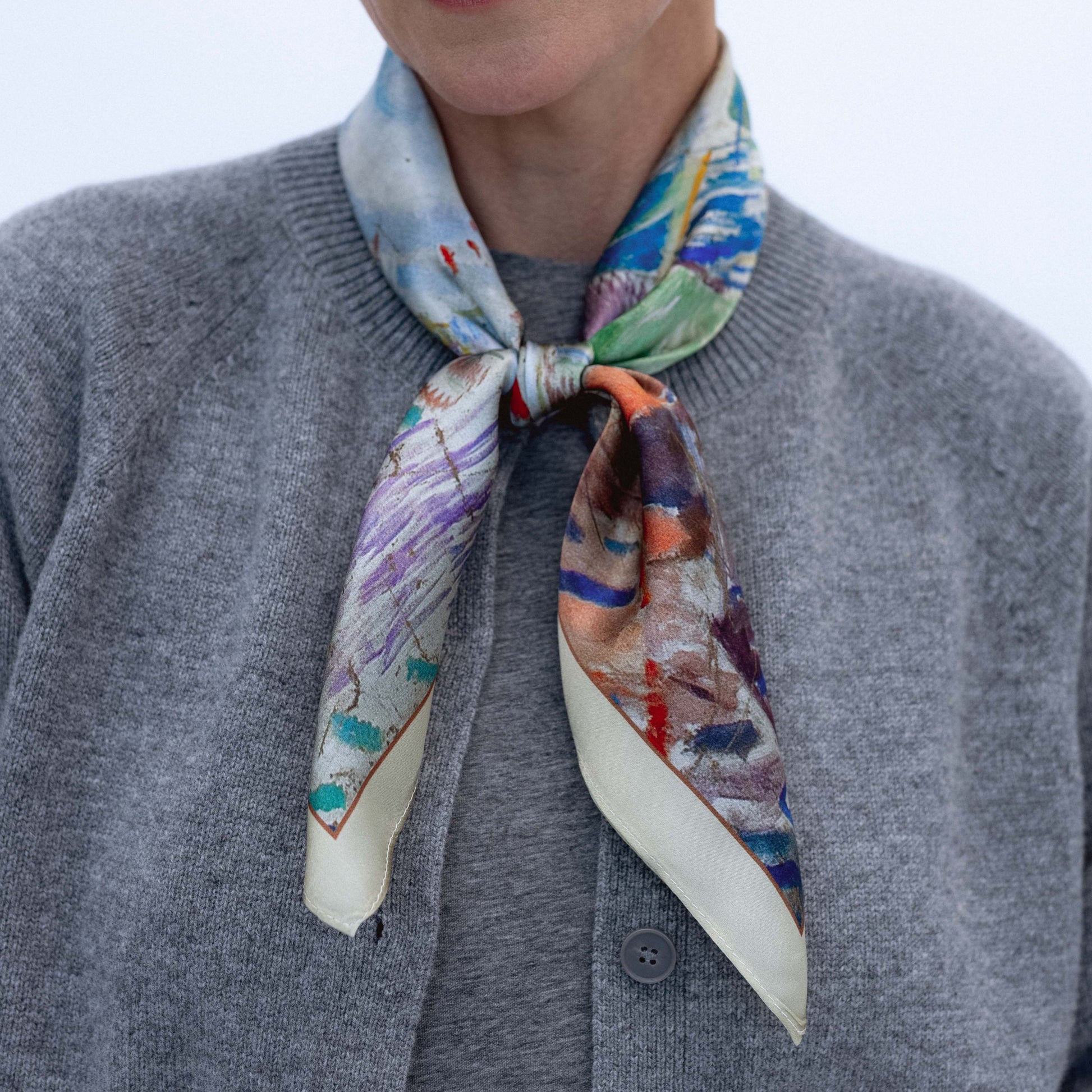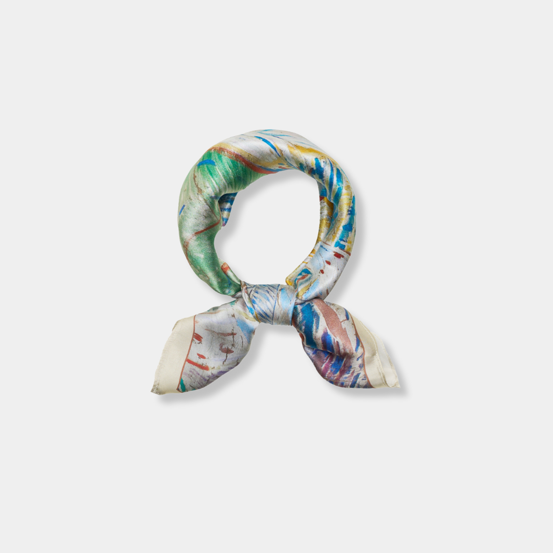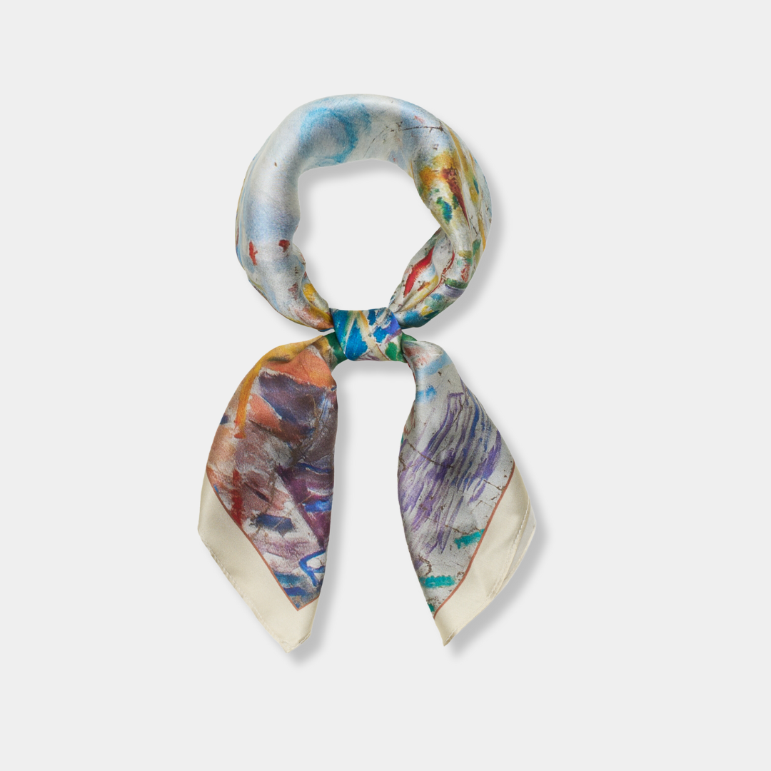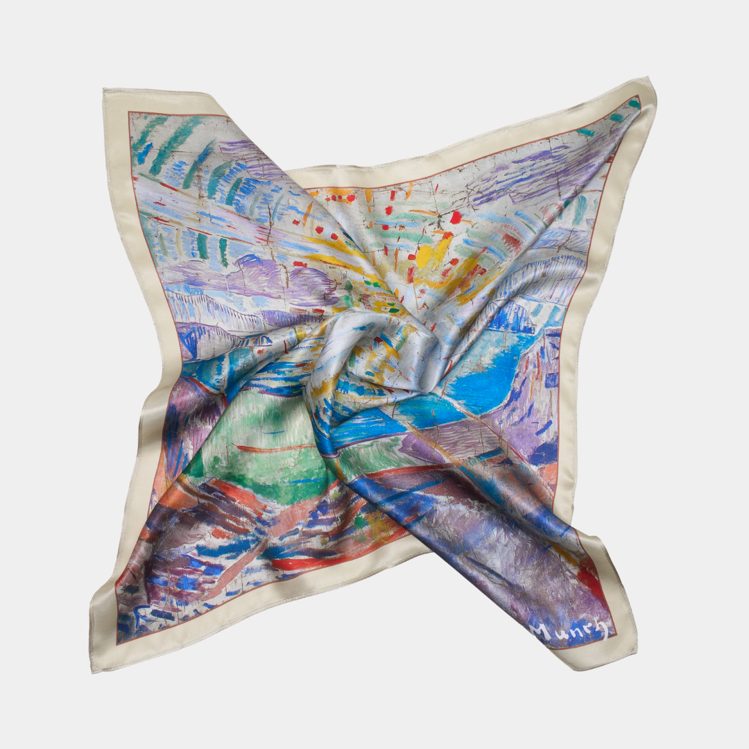 Foulard en soie orné des chefs-d'œuvre d'Edvard Munch – une fusion entre art, émotion et élégance.