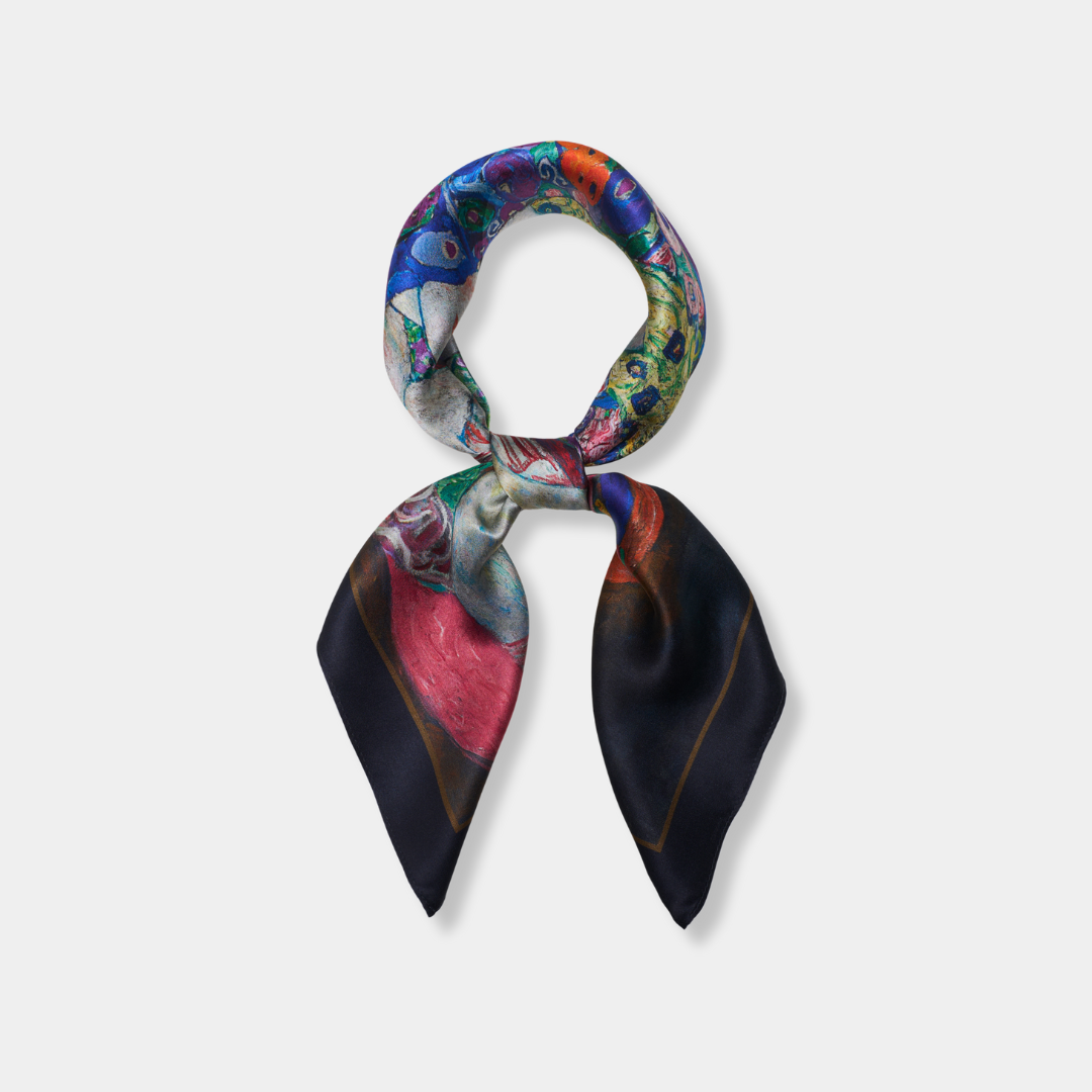 Gustav Klimt est un artiste dont l’univers conjugue luxe, raffinement et sensualité. Ses chefs-d’œuvre emblématiques, incarnant l’amour, la passion et la beauté intemporelle de la vie, se révèlent sous un nouveau jour à travers ce somptueux foulard en soie, vous offrant ainsi la possibilité de porter un fragment d’art et d’élégance.