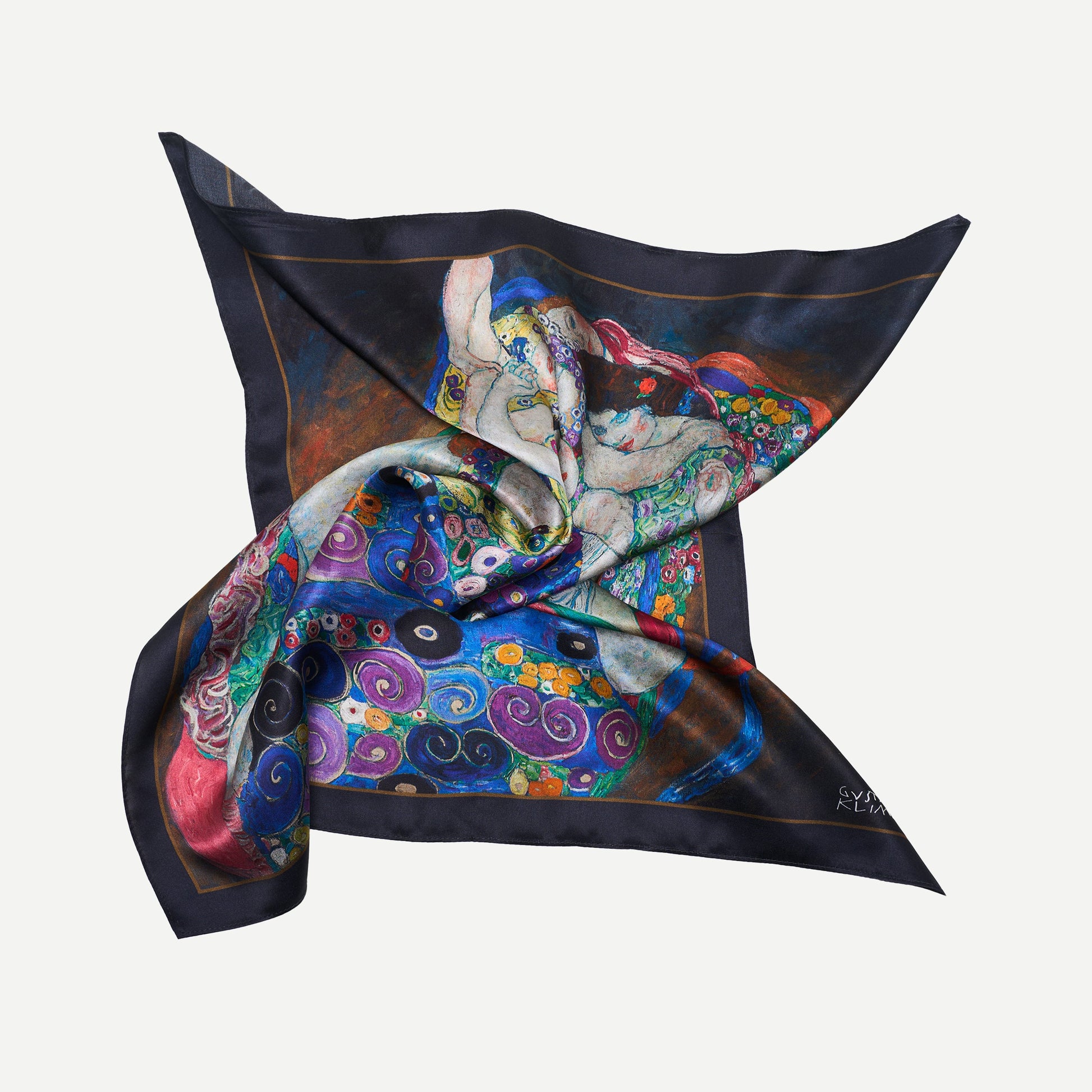 Le design de ce foulard en soie s’inspire de l’œuvre de Gustav Klimt La Vierge. Huile sur toile. Autriche, 1913.