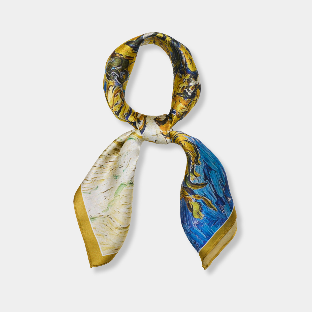 Un foulard en soie orné des chefs-d’œuvre de Vincent van Gogh – entre inspiration et luxe.